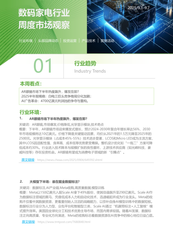 【艾瑞咨询】【202509】数码家电行业周度市场观察-8页 市场调研