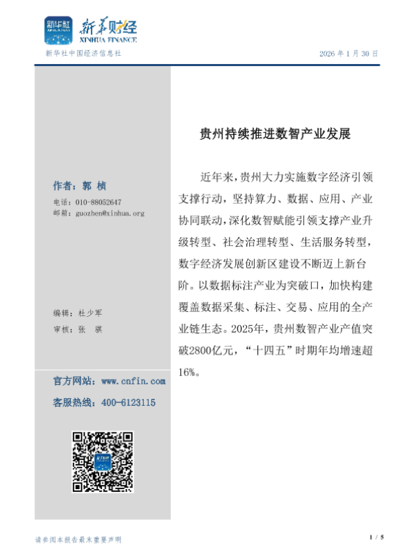 【新华社中国经济信息社】【202601】贵州持续推进数智产业发展-5页 行业研究