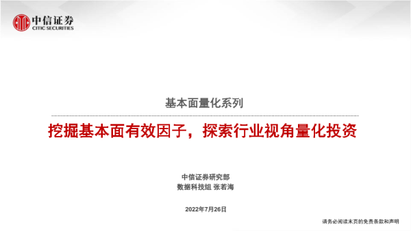 【中信证券】【20220726】基本面量化系列:挖掘基本面有效因子,探索行业视角量化投资-27页 行业研究