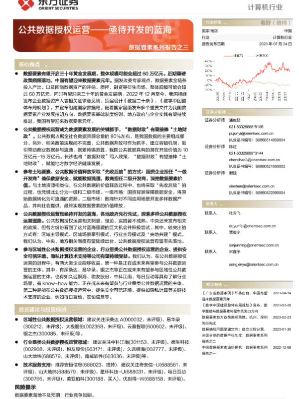 【东方证券】【20230724】20230724-东方证券-计算机行业深度报告:数据要素系列报告之三-公共数据授权运营——亟待开发的蓝海-56页 行业研究