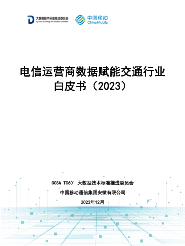 【CCSA TC601大数据技术标准推进委员会】【202312】电信运营商数据赋能交通行业白皮书-37页 白皮书