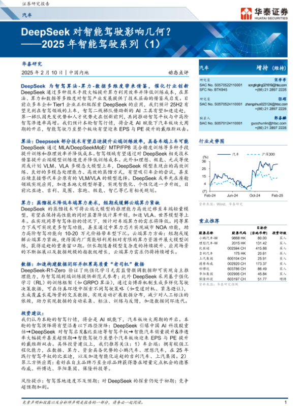 【华泰证券】【20250210】DeepSeek对智能驾驶影响几何?-12页 行业研究