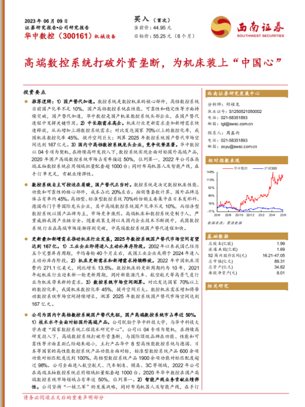 【西南证券】【20230609】高端数控系统打破外资垄断,为机床装上“中国心”-31页 行业研究