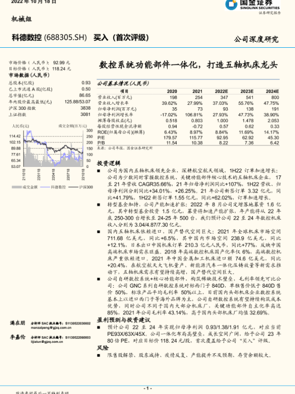 【国金证券】【20221018】科德数控-688305.SH-数控系统功能部件一体化,打造五轴机床龙头-24页 行业研究