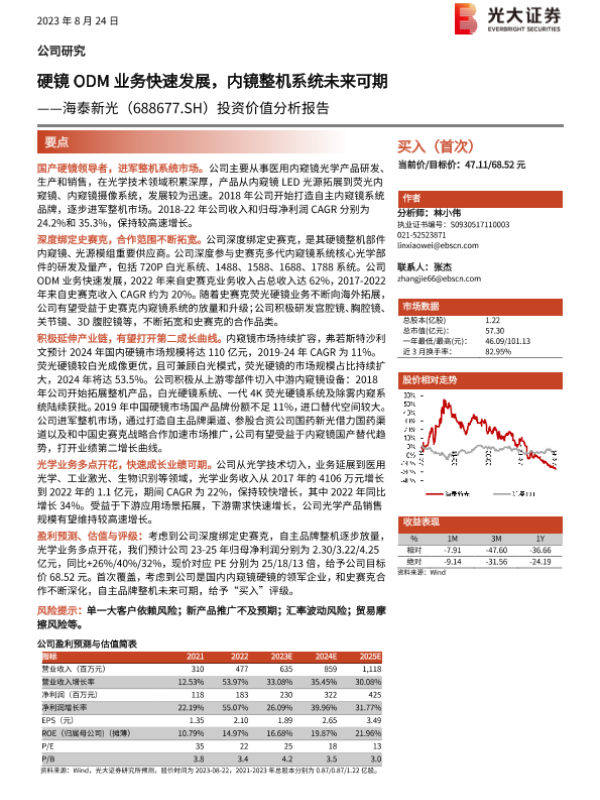 【光大证券】【20230824】海泰新光(688677)投资价值分析报告:硬镜ODM业务快速发展,内镜整机系统未来可期-33页 行业研究
