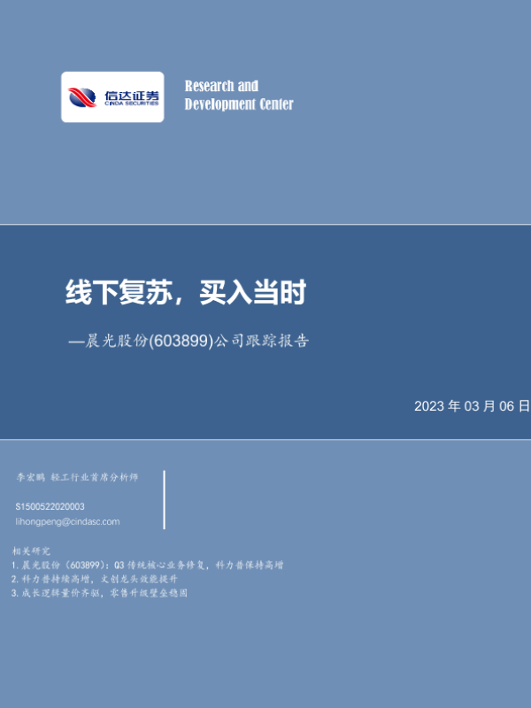 【信达证券】【20230306】公司跟踪报告:线下复苏,买入当时-18页 行业研究
