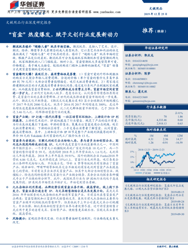 【华创证券】【20191225】文娱用品行业深度研究报告:“盲盒”热度爆发,赋予文创行业发展新动力-31页 行业研究