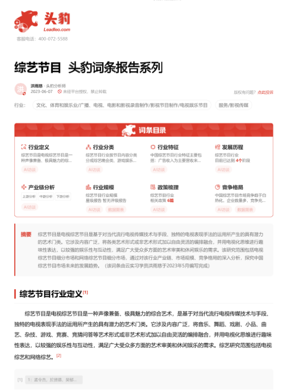【头豹研究院】【20230912】综艺节目 头豹词条报告系列-18页 行业研究