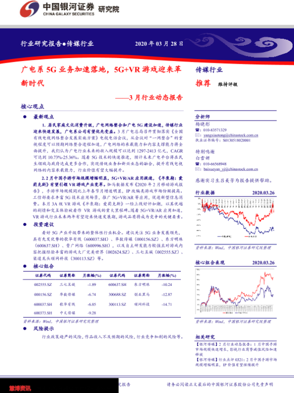 【银河证券】【20200328】传媒行业3月行业动态报告:广电系5G业务加速落地,5G+VR游戏迎来革新时代-45页 行业研究