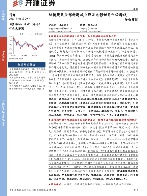 【开源证券】【20230129】继续聚焦头部新游戏上线及电影新片供给释放-15页 行业研究