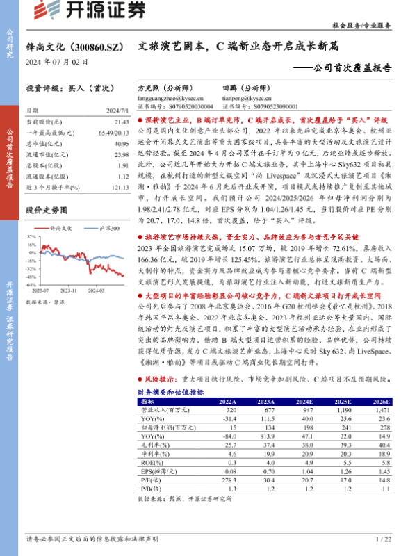 【开源证券】【20240702】锋尚文化(300860)公司首次覆盖报告:文旅演艺固本,C端新业态开启成长新篇-22页 行业研究