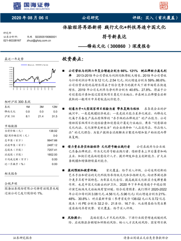 【国海证券】【20200806】20200806-国海证券-锋尚文化-300860.SZ-深度报告:体验经济再添新将 践行文化+科技再造中国文化符号新表达-33页 行业研究
