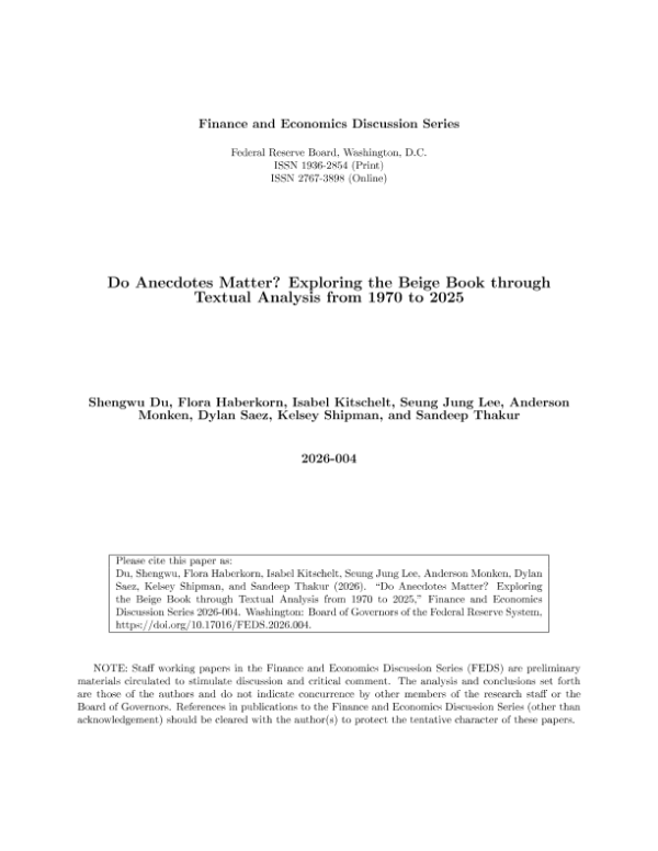 【Board of Governors of the Federal Reserve System】【2026】Do Anecdotes Matter? Exploring the Beige Book through Textual Analysis from 1970 to 2025-34页 学术论文
