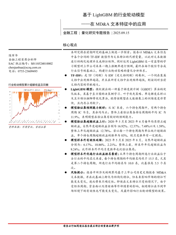 【首创证券】【202509】量化研究专题报告:在MD&A文本特征中的应用,基于LightGBM的行业轮动模型-28页 证券期货研究报告