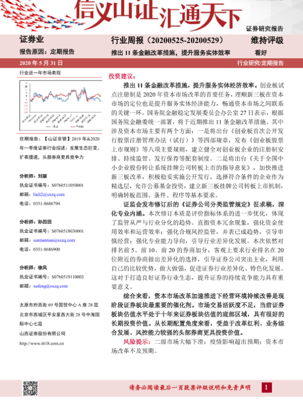 【山西证券】【20200531】证券行业周报:推出11条金融改革措施,提升服务实体效率-8页 行业研究