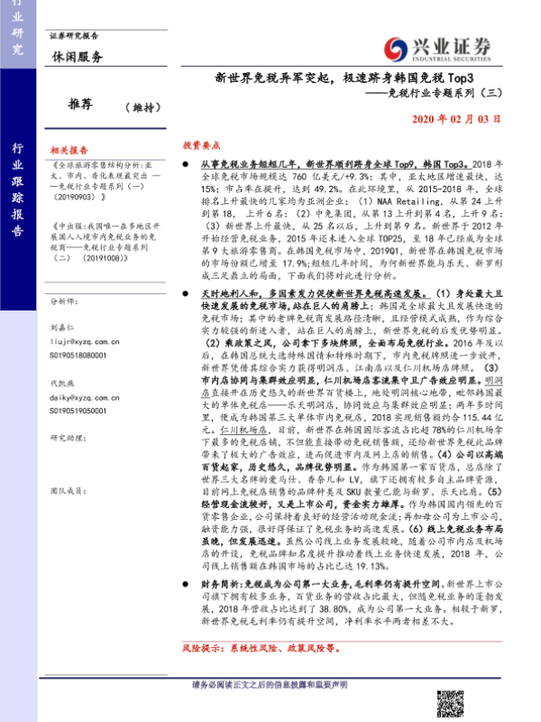 【兴业证券】【20200203】新世界免税异军突起,极速跻身韩国免税 Top3-19页 行业研究