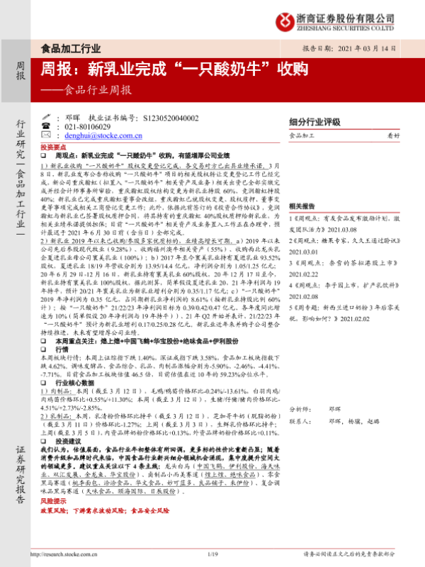 【浙商证券】【20210314】20210314-浙商证券-食品行业周报:新乳业完成“一只酸奶牛”收购-19页 行业研究