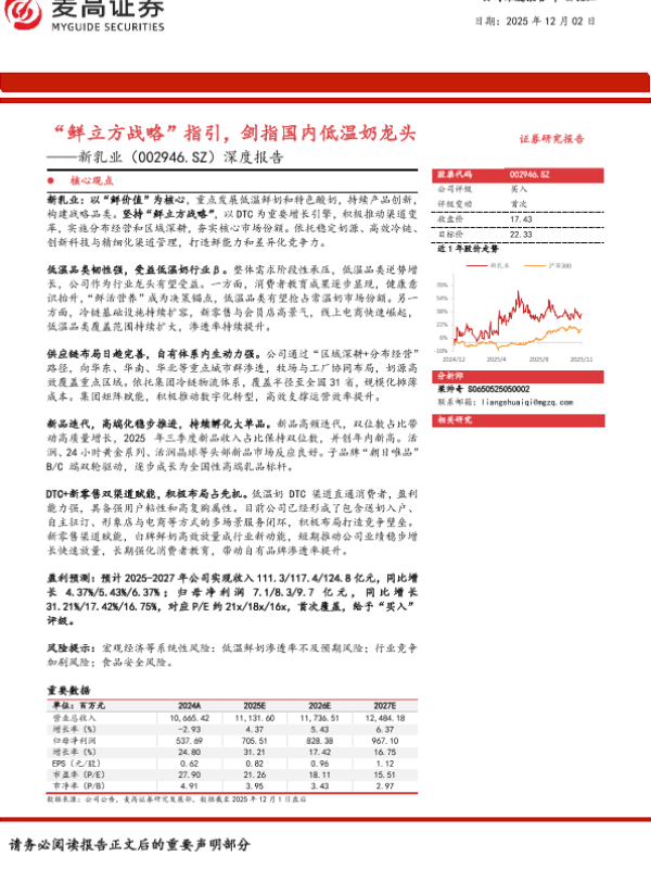【麦高证券】【202512】“鲜立方战略”指引,剑指国内低温奶龙头——新乳业(002946.SZ)深度报告-26页 证券期货研究报告