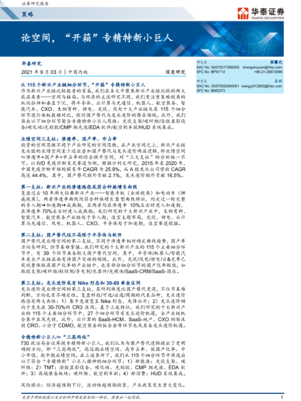 【华泰证券】【20210903】深度研究:论空间,“开箱”专精特新小巨人-34页 行业研究