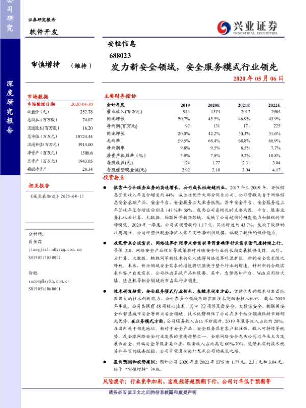 【兴业证券】【20200506】发力新安全领域,安全服务模式行业领先-35页 行业研究