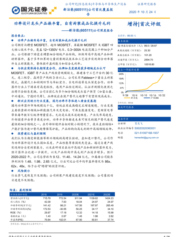 【国元证券】【20201024】功率设计龙头产品族丰富,自有封装成品化提升毛利-31页 行业研究