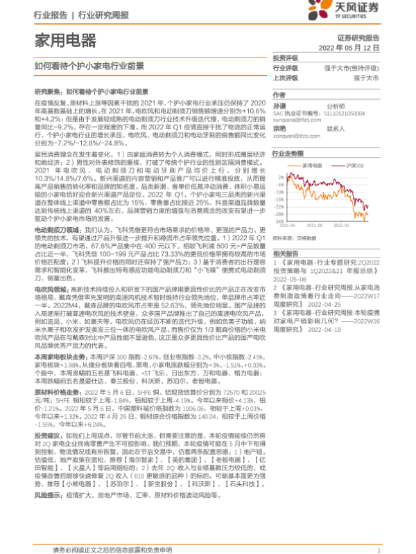 【天风证券】【20220512】20220512-天风证券-家用电器行业研究周报:如何看待个护小家电行业前景-19页 行业研究