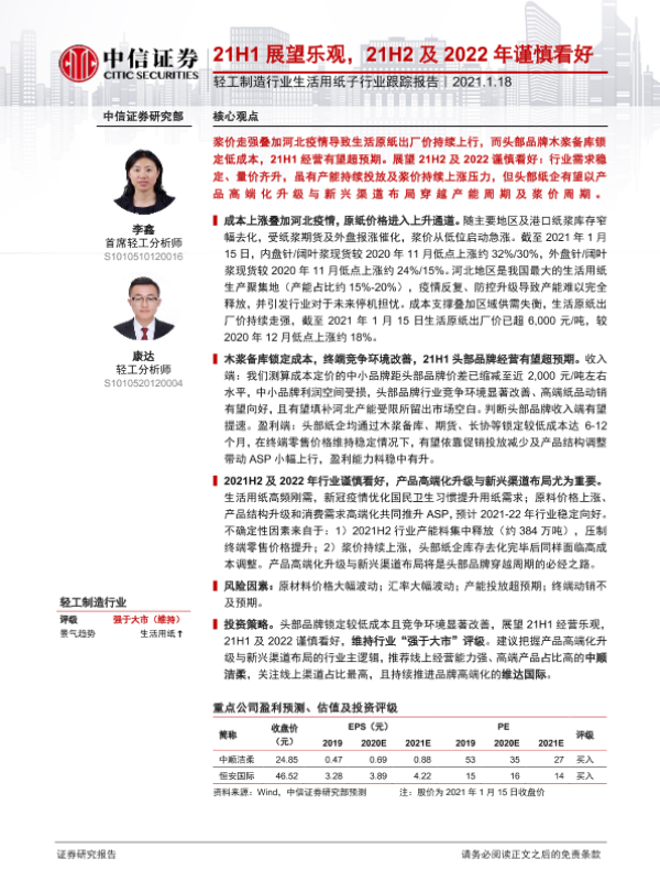 【中信证券】【20210118】21H1展望乐观,21H2及2022年谨慎看好-11页 行业研究