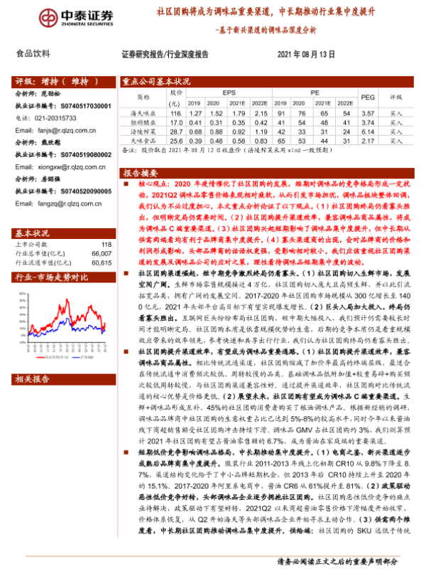 【中泰证券】【20210813】食品饮料行业基于新兴渠道的调味品深度分析:社区团购将成为调味品重要渠道,中长期推动行业集中度提升-27页 行业研究