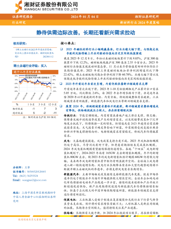 【湘财证券】【20240104】新材料行业2024年度策略:静待供需边际改善,长期还看新兴需求拉动-33页 行业研究