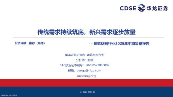 【华龙证券】【20250702】建筑材料行业2025年中期策略报告:传统需求持续筑底,新兴需求逐步放量-30页 证券期货研究报告