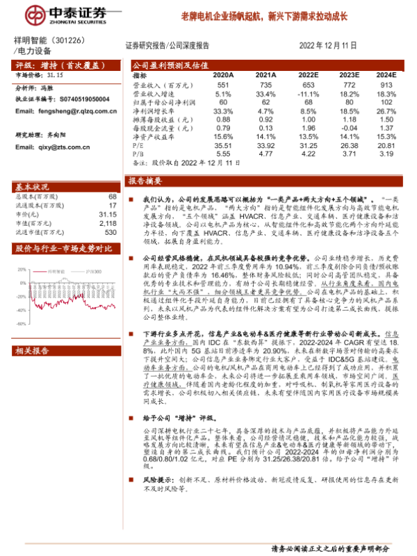 【中泰证券】【20221211】老牌电机企业扬帆起航,新兴下游需求拉动成长-27页 行业研究