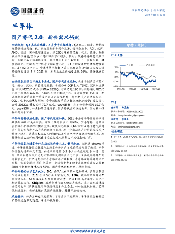 【国盛证券】【20220807】深度报告-20220807-国盛证券-半导体行业深度_国产替代2.0_新兴需求崛起-79页 行业研究