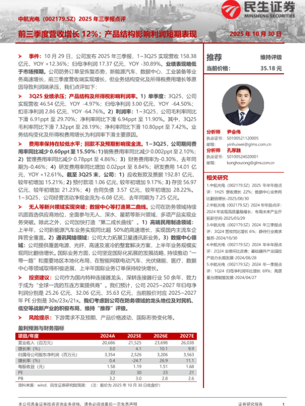 【民生证券】【202510】2025年三季报点评:前三季度营收增长12%;产品结构影响利润短期表现-3页 证券期货研究报告