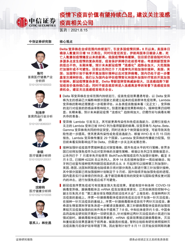 【中信证券】【20210815】疫情下疫苗价值有望持续凸显,建议关注流感疫苗相关公司-24页 行业研究