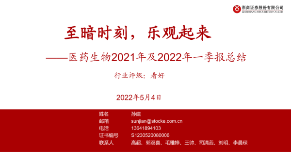 【浙商证券】【20220504】医药生物行业2021年及2022年一季报总结:至暗时刻,乐观起来-73页 行业研究