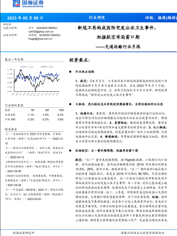 【国海证券】【20230509】交通运输行业月报:新冠不再构成国际突发公共卫生事件,把握航空布局窗口期-35页 行业研究