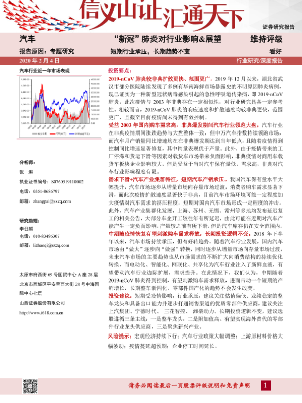 【山西证券】【20200204】“新冠”肺炎对行业影响&展望-短期行业承压,长期趋势不变-14页 行业研究