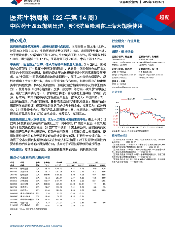 【国信证券】【20220405】中医药十四五规划出炉,新冠抗原检测在上海大规模使用-17页 行业研究