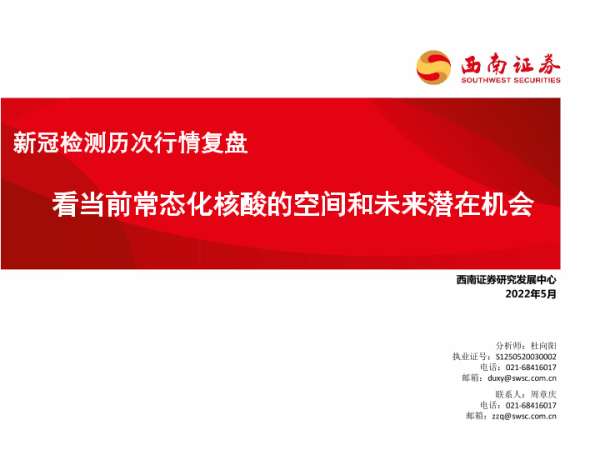 【西南证券】【202205】医药:新冠检测历次行情复盘-看当前常态化核酸的空间和未来潜在机会-24页 行业研究