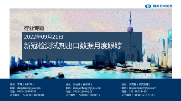 【国泰君安证券】【20220921】医药行业专题:新冠检测试剂出口数据月度跟踪-11页 行业研究