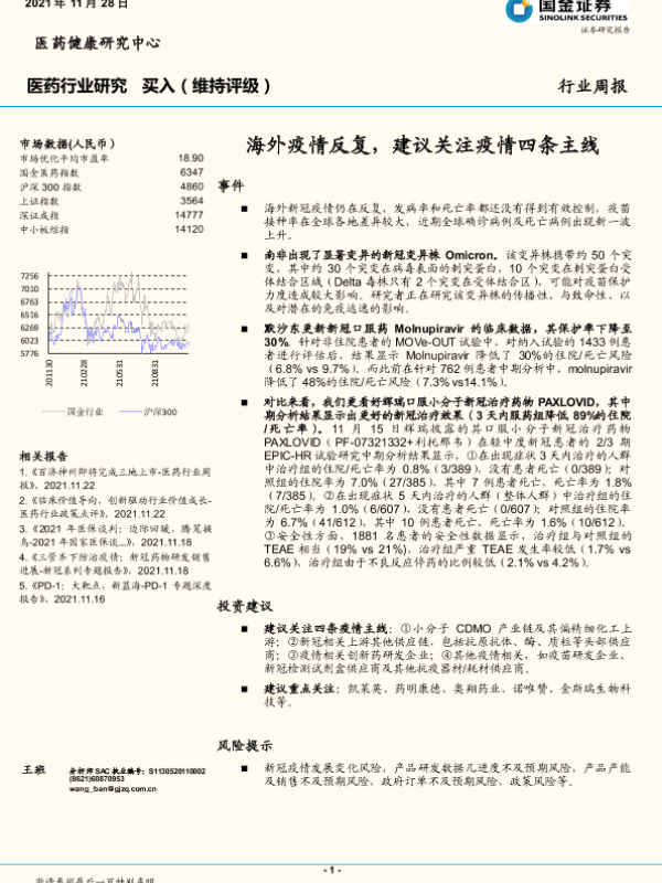 【国金证券】【20211128】医药行业研究:海外疫情反复,建议关注疫情四条主线-8页 行业研究