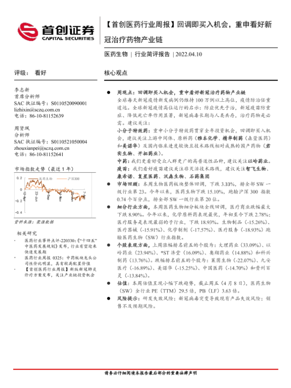 【首创证券】【20220410】首创医药行业周报:回调即买入机会,重申看好新冠治疗药物产业链-11页 行业研究