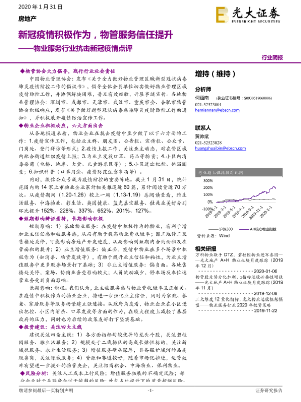 【光大证券】【20200131】物业服务行业抗击新冠疫情点评-4页 行业研究