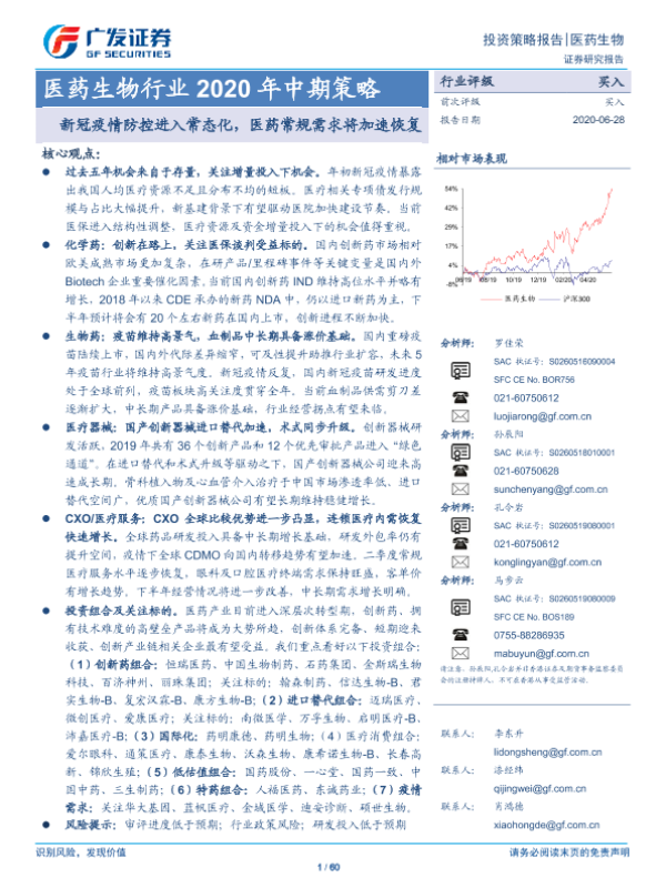 【广发证券】【20200628】医药生物行业2020年中期策略-60页 行业研究