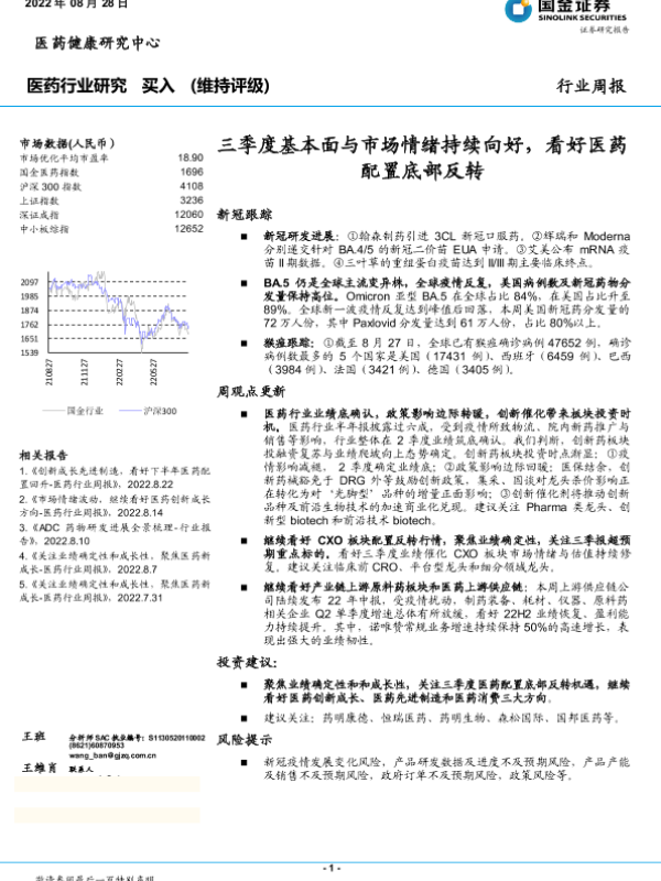 【国金证券】【20220828】医药行业研究周报:三季度基本面与市场情绪持续向好,看好医药配置底部反转-23页 行业研究