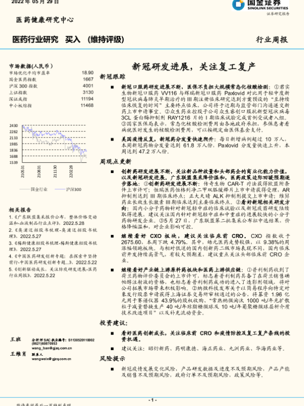 【国金证券】【20220529】医药行业研究:新冠研发进展,关注复工复产-23页 行业研究