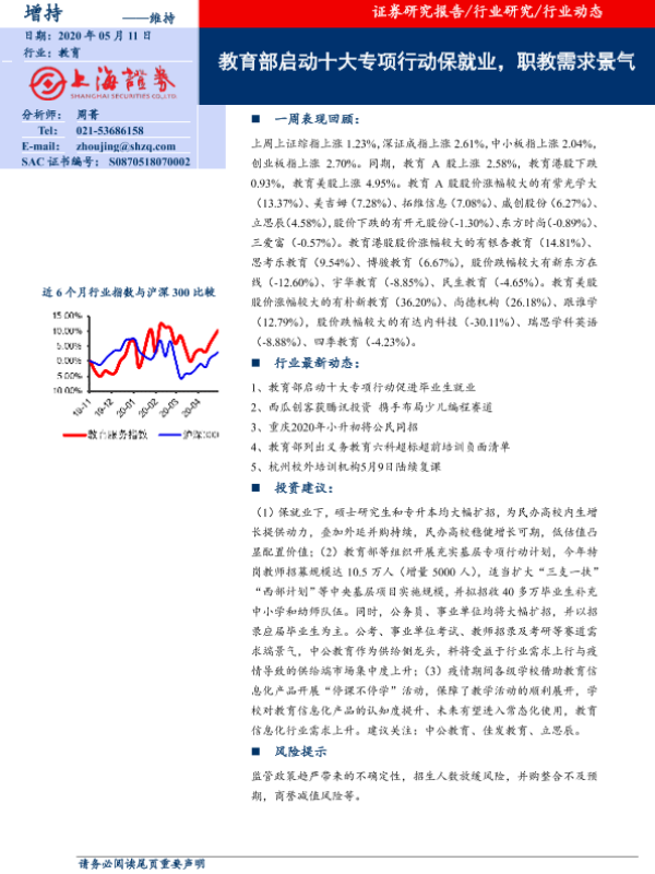 【上海证券】【20200511】教育部启动十大专项行动保就业,职教需求景气-7页 行业研究