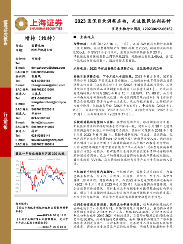 【上海证券】【20230617】2023医保目录调整启动,关注医保谈判品种-24页 行业研究