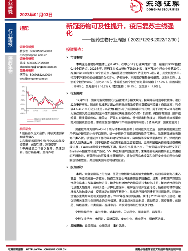【东海证券】【20230103】新冠药物可及性提升,疫后复苏主线强化-11页 行业研究