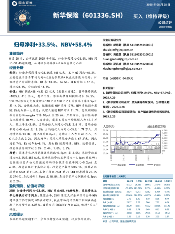 【国金证券】【20250828】新华保险-归母净利+33.5%_NBV+58.4%-4页 证券期货研究报告